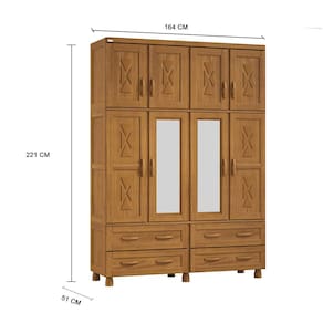O Guarda-Roupa Caribe de 8 portas é a escolha ideal para quem busca elegância, organização e funcionalidade no quarto. Produzido em madeira maciça de Pinus com acabamento em Carvalho Acetinado, ele conta com maleiro integrado, 4 gavetas externas com corrediças metálicas, 2 portas com espelhos, puxadores de madeira e porta com aplique. É um móvel robusto e com excelente aproveitamento interno, perfeito para compor ambientes sofisticados com praticidade.