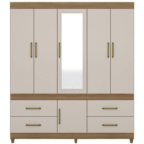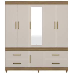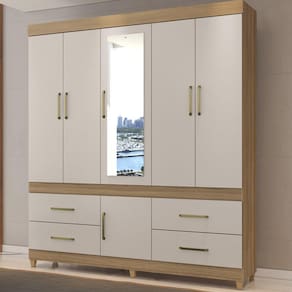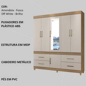 Guarda Roupa Casal 06 Portas Com Espelho 64720, moderno e sofisticado, permite guardar muitas coisas e ainda ter locais separados para o casal. Estrutura 100% em MDP 12 mm e 15 mm, feito com material ecologicamente correto, para melhor durabilidade e resistência da peça, conta com pintura em acabamento UV. Composto por 06 portas de giro com dobradiças metálicas, sendo a central com espelho, 04 gavetas contendo corrediças metálicas, maleiro para acomodar suas roupas de cama e travesseiros, 3 prateleiras internas, 2 cabideiros metálicos, além de compartimento para acomodar seus sapatos, seus puxadores são em plástico ABS e pés em PVC. Além de ampla capacidade de armazenamento, foi desenvolvido para oferecer total conforto e comodidade para você. Este móvel chegará em sua casa separado em 03 volumes.