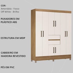 Guarda Roupa Casal 08 Portas 82060 Demobile, imponente veio pra trazer beleza e organização para seu quarto. Estrutura 100% em MDP 12 mm, feito com material ecologicamente correto, para melhor durabilidade e resistência da peça, conta com pintura em acabamento UV. Composto por 08 portas de giro com dobradiças metálicas, 02 gavetas contendo corrediças metálicas, compartimento para sapatos, 4 prateleiras internas, cabideiros em madeira revestida, seus puxadores são em plástico ABS e pés em PVC. Além de ampla capacidade de armazenamento, foi desenvolvido para oferecer total conforto e comodidade para você. Este móvel chegará em sua casa separado em 02 volumes.