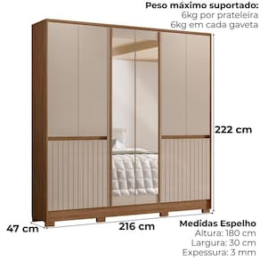 Guarda Roupa Casal 10 P Espelho 216 cm Alasca Moval - Marrom