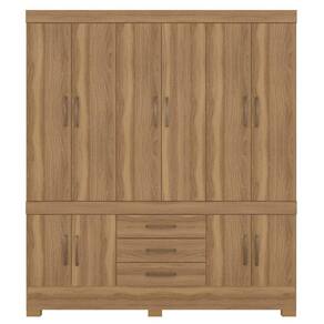 Roupeiro com divisões bem distribuídos oferecendo compartimentos exclusivos para vários pares de sapatos, maleiro espaçoso, 2 prateleiras, 3 gavetas e 2 cabideiros, para facilitar possui 10 portas com abertura convencional, para dar aquele toque especial os puxadores vem na cor bronze.