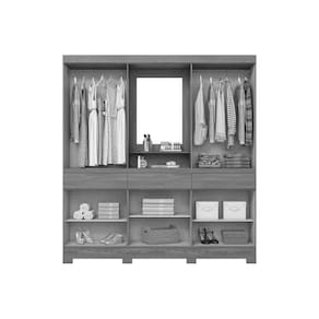 Material dos Cabideiros - Cabideiro de Madeira Tipo de Porta do Guarda-Roupa - Portas de Bater Material das Portas - Portas em MDP Tipo de Dobradiças - Dobradiças Metálicas Quantidade de Portas - 10 Portas de Abrir Material das Gavetas - Gavetas em MDP Tipo de Corrediça - c/ Corrediças Metálicas Tipo dos Pés - ABS/PVC Quantidade de Pés - 8 pés Material das Prateleiras - Prateleiras em MDP Quantidade de Prateleiras - 3