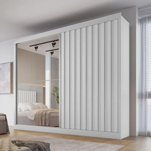 1 Guarda Roupa Casal Ripado com Espelho 2 Portas 4 Gavetas - Atlanta - Made Marcs