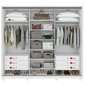 Altura: 247 | Largura: 270 | Profundidade: 62 | Principais Características 1: Produto 100% em MDF com chapas de 15mm | Principais Características 2: Gavetas com comeias organizadoras | Principais Características 3: 6 Gavetas com corrediças telescópicas | Número de Caixa: 6 | Número do Modelo: Vitta | Contém Certificado Externo: Sim | Requer Batérias: Não | Componentes inclusos: Manual de Montagem e Ferragens | Cor: Branco | Dimensões do Produto: 247x270x62 cm | Número de Peças: 1 | Número de item: 1 | Fabricante: Móveis Lopas | Peso do Item: 250.9 | Produto Frágil: Sim | Necessita de Montagem: Sim | Tonalidade: Branco | Tipo de Guarda-Roupa: Casal | Quantidade de Portas: 3 | Quantidade de Gavetas: 6 | Tipo de Porta: Correr | Linha: Vitta | Peso Suportado: 120 kg | Quantidade de Cabideiro: 2 | Material: MDF | Tipo do Material: Madeira