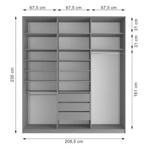 O Guarda-Roupa Zermatt é confeccionado em MDF de alta qualidade, com acabamento melamínico BP e fitas de borda em PVC, oferecendo excelente resistência e durabilidade. Este modelo conta com corrediças telescópicas de alto padrão, trilhos e puxadores em alumínio, além de um sistema anti-descarrilamento, proporcionando um deslizamento suave e seguro. Com um amplo espaço interno, é ideal para quem valoriza organização e qualidade. O guarda-roupa Zermatt possui um espelho inteiriço, que além de funcional, adiciona sofisticação ao ambiente. Um móvel elegante e prático, pensado para superar todas as suas expectativas! Acabamento da Prateleira: BP Melamínico Escala de Brilho da Prateleira: Fosco Possui Cabideiros: Sim Acabamento da Gaveta: BP Melamínico Escala de Brilho da Gaveta: Fosco Possui Organizador de Gaveta: Não Acabamento da Porta: BP Melamínico Escala de Brilho da Porta: Fosco Material do Puxador da Porta: Alumínio Acabamento dos Pés: BP Melamínico Altura do Espelho: 223 cm Altura dos Pés: 6 cm Altura Máxima dos Pés: 6.0000 Ambiente Principal: Quarto codigo_ean: 7900288014283 Complexidade da Montagem: Média: pode ser montado por mais de uma pessoa e/ou necessite de maior conhecimento para montagem Cor: Urbi Cor do Produto: Urbi Escala de Brilho: Fosco Espessura da Estrutura (mm): 15 mm Espessura das Portas (mm): 18 mm Espessura das Prateleiras (mm): 15 mm Espessura do Espelho: 3 mm Espessura do Fundo (mm): 3 mm Espessura do Fundo das Gavetas (mm): 3 mm Formato do Espelho: Retangular Itens Inclusos: 1 Guarda Roupa, Kit Ferragens e Manual de Montagem Largura do Espelho: 66 cm Linha ou Coleção: Zermatt Manual de Montagem e Instalação: https://product-hub-prd.madeiramadeira.com.br/961870/documents/fc6478b0-c4cf-4c7b-9439-812b27e8c84544a549edfa45972f1c9a5IDMM3.pdf Marca: RR Móveis Material da Gaveta: MDF Material da Porta: MDF Material da Prateleira: MDF Material dos Pés: MDF Material Principal: MDF modular: Não Montagem Flex: Nao Necessita Montagem: Sim Origem do Produto: Nacional Peso: 170 kg Peso Máximo por Gaveta: 35 kg Peso Máximo por Prateleira: 20 kg Possui Calceiros: Não Possui Espaço para Vestidos Longos: Sim Possui Espelho: Sim Possui Ganchos: Não Possui Pés: Rodapé Possui Portas: Sim Possui Prateleiras: Sim Possui Sapateira: Sim Produto Montado: Sim Quantidade de Espelho: 01 Quantidade de Gavetas: 03 Gavetas Recomendações de Uso, Manutenção e Limpeza: Pano úmido Sistema de Montagem: Parafusos, Cavilhas e Minifix Tipo de Corrediça da Gaveta: Metálica Telescópica Tipo de Dobradiça/Corrediça da Porta: Alumínio Tipo de Fixação do Espelho: Silicone Tipo de Gaveta: Interna Tipo de Guarda-Roupa: Casal Tipo de Puxador da Gaveta: Não Possui Tipo de Puxador da Porta: Embutido Marca: RR Móveis