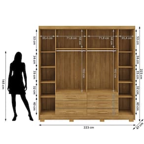 • Altura: Guarda-Roupa: 223 cm; Cômoda: 96,5 cm;