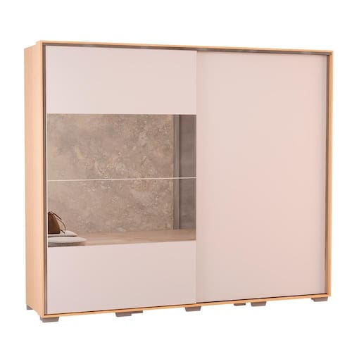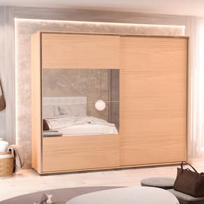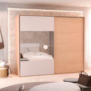 Guarda-Roupa Casal 100% MDF Édez Atena, 2 Portas de Correr com Espelho, Nature e Off White, 266 cm