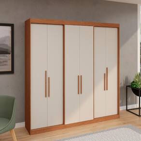 Estrutura de MDF 12 mm e portas e prateleiras de 15 mmGuarda-Roupa Casal 100% MDF Édez Elan, 6 Portas de Bater, Carvalho Vermont e Off White, 206 cm