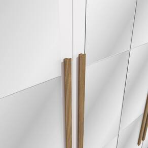 As portas possuem puxadores em madeira e sistema de amortecimento, proporcionando um fechamento suave, além do detalhe ripado em sua moldura, deixando seu quarto com ainda mais estilo e modernidade.