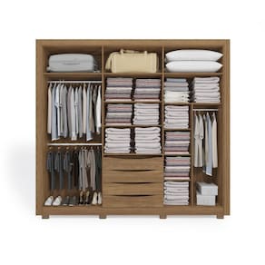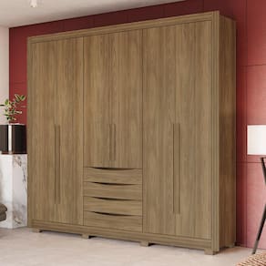 Deixe seu quarto ainda mais lindo, moderno e organizado com a linha de Guarda-Roupas 100% MDF da Loja Oficial Kappesberg. Na cor Nogueira, com 6 portas e 4 gavetas, sem espelho e pés em Polipropileno, ele tem o tamanho ideal para um quarto de casal. Todo produzido com chapas de 15mm, o que garante mais robustez, firmeza e qualidade ao seu Guarda-Roupas. Sua pintura é feita com sete camadas, garantindo mais durabilidade e beleza ao seu móvel. As portas possuem puxadores em madeira e Sistema de Amortecimento, proporcionando um fechamento suave, além do detalhe ripado em sua moldura, deixando seu quarto com ainda mais estilo e modernidade. Você precisa de espaço? Na parte interna, há muito espaço com diversos nichos de tamanhos diferentes, ideal para organizar calçados e roupas dobradas. Nos cabideiros, que são metálicos e com suporte interno, garantindo melhor acabamento e durabilidade, é possível guardar as roupas em cabides e até mesmo organizar mantas e acessórios. Suas gavetas possuem Corrediças Telescópicas, garantindo a abertura total, para que você aproveite todo espaço disponível. Feito 100% em MDF, o Guarda-Roupas M580 é a opção ideal para quem quer renovar seu quarto com a qualidade, modernidade e beleza dos Móveis Kappesberg.