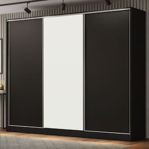 Itens inclusos: - Três (3) cabideiros - Quatro (4) gavetas internas - Oito (8) prateleiras - Três (3) portas de correr, apresentando sistema anti-descarrilhamento