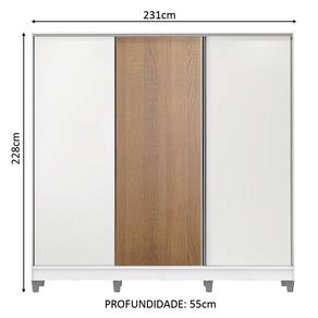 Medidas totais do armário: 228 cm de altura x 231 cm de largura x 55 cm de profundidade.