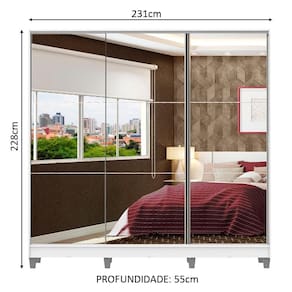 Medidas totais do armário: 228 cm de altura x 231 cm de largura x 55 cm de profundidade..