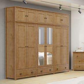 Guarda-Roupa Casal 12 Portas 3 Gavetas Topázio Freijó Madeira Pinus - Finestra