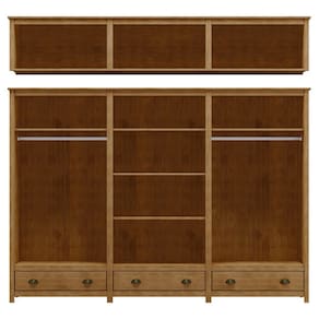 Modelo bipartido, com maleiro e guarda roupa.
