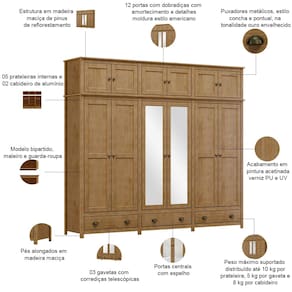 O espelho integrado transforma o ritual matinal em um momento de charme, enquanto o maleiro espaçoso acomoda até aqueles cobertores de inverno que nunca sabemos onde guardar. Cada detalhe foi pensado para a vida a dois, desde prateleiras amplas, cabideiros estratégicos até detalhes dos puxadores concha e moldura nas portas, estilo americano. Mais que um roupeiro grande, um compartimento de histórias - onde cada porta abre espaço não só para roupas, mas para memórias bem guardadas.