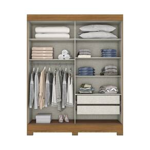 FICHA TECNICA: Acabamento: Nas versoes Nature e Cinza a Pintura e UV Texturizada e nas versoes Jequitiba Brilho e Off White a Pintura e UV Cor Interna: Trama Escala de Brilho: Nas versoes Nature e Cinza e Fosco e nas versoes Jequitiba Brilho e Off White e Brilho Material do Fundo: MDF Possui Espaco para Vestidos Longos: Nao Possui Ganchos: Nao Possui Iluminacao Led: Nao Possui Maleiro: Sim Possui porta Objetos: Nao Qtd. Portas: 2 Und. Tipo Porta: Correr Material da Porta: MDP Material do Puxador Porta: Aluminio Qtd. Gavetas: 2 Und. Material da Gaveta: MDP Material da Corredica: Metalica Peso Maximo por Gaveta: Cada gaveta suporta ate 3 Kg, a carga deve ser distribuida uniformemente. Possui Organizador de Gaveta: Nao Qtd. Prateleiras: 3 Und. Material da Prateleira: MDP Peso Maximo por Prateleira: Cada prateleira suporta ate 8 Kg, a carga deve ser distribuida uniformemente. Possui pes: 6 Und. Material dos Pes: ABS Altura Pes/Rodapes: 5 Cm Pes Regulaveis: Nao Possui Espelho: Nao Produto Suporta ate (Kg): 62 Kg Material Principal: MDP Medidas Montado: (A x L x P) 200 x 159 x 48 cm Peso Montado: 83 Kg