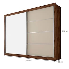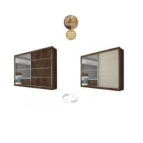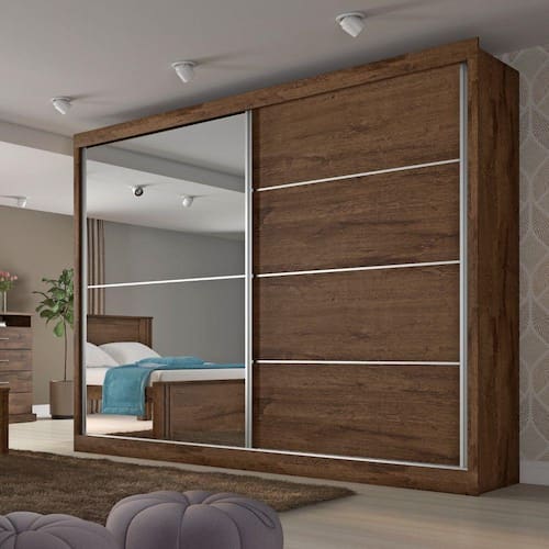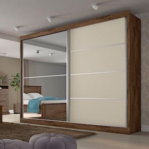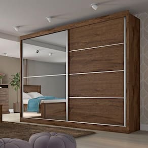 Características Material 100 MDF 2 Portas de correr sendo 1 Porta com Espelho 4 Gavetas 8 Prateleiras Corrediças telescópicas 2 Cabideiros em Alumínio 2 Calceiro em Alumínio