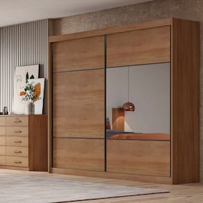 100% MDF, PERFIL PUXADOR EM ALUMÍNIO BRONZE, COLUNADO 25MM, TRILHO INFERIOR EM ALUMÍNIO E ROLDANAS COM AMORTECEDORES, INTERNO ELE E ELA, ESPELHO INTEIRO, FUNDO INTEIRIÇO, ROLDANA SUPERIOR COM GUIA ZERO E FREIO, GAVETAS INTERNAS COM PUXADORES E CORREDIÇAS TELESCÓPICAS, CABIDEIRO E CALCEIRO EM ALUMÍNIO. Acabamento da Prateleira: Pintura Texturizada UV Escala de Brilho da Prateleira: Semi-Fosco Possui Cabideiros: Sim Acabamento da Gaveta: Pintura Texturizada UV Escala de Brilho da Gaveta: Semi-Fosco Material do Puxador da Gaveta: ABS Possui Organizador de Gaveta: Não Acabamento da Porta: Pintura Texturizada UV Escala de Brilho da Porta: Semi-Fosco Material do Puxador da Porta: Alumínio Altura do Espelho: 107 cm Ambiente Principal: Quarto codigo_ean: 7900288143860 Complexidade da Montagem: Média: pode ser montado por mais de uma pessoa e/ou necessite de maior conhecimento para montagem Cor: Cumaru Cor do Produto: Cumaru Cor do Puxador: Bronze Escala de Brilho: Semi-Fosco Espessura da Estrutura (mm): 12 mm Espessura das Portas (mm): 15 mm Espessura das Prateleiras (mm): 15 mm Espessura do Espelho: 3 mm Espessura do Fundo (mm): 3 mm Espessura do Fundo das Gavetas (mm): 3 mm Formato do Espelho: Retangular Gaveta com Chave: Não Itens Inclusos: 1 Guarda-Roupa, Kit de Ferragens e Manual de Montagem Largura do Espelho: 116,5 cm Linha ou Coleção: Blumenau Manual de Montagem e Instalação: https://cdn2.madeiramadeira.com.br/atributo/moveis-novo-horizonte/2913342-358-17467317596709.pdf Marca: Siena Móveis Material da Gaveta: MDF Material da Porta: MDF Material da Prateleira: MDF Material Principal: MDF modular: Não Montagem Flex: Não Necessita Montagem: Sim Nicho com Cabideiro: Sim Origem do Produto: Nacional Peso: 232 kg Peso Máximo por Gaveta: 5 kg Peso Máximo por Prateleira: 10 kg Possui Calceiros: Não Possui Espaço para Vestidos Longos: Não Possui Espelho: Sim Possui iluminação: Não Possui Penteadeira: Não Possui Pés: Não Possui Portas: Sim Possui Prateleiras: Sim Quantidade de Cabideiros: 02 Cabideiros Quantidade de Espelho: 01 Quantidade de Gavetas: 08 Gavetas Quantidade de Portas com Espelhos: 1 Porta com Espelho Quantidade de Prateleiras: 10 Prateleiras Recomendações de Uso, Manutenção e Limpeza: Limpar com flanela ou pano macio seco, não utilizar produtos abrasivos, desengordurantes, álcool ou solventes. Não expor produto diretamente à luz solar e à umidade. Sistema de Montagem: Parafusos, Cavilhas e outros Tipo de Corrediça da Gaveta: Metálica Telescópica Tipo de Dobradiça/Corrediça da Porta: Alumínio Tipo de Fixação do Espelho: Fita Dupla Face Tipo de Gaveta: Interna Tipo de Guarda-Roupa: Casal Tipo de Puxador da Gaveta: Externo Tipo de Puxador da Porta: Externo