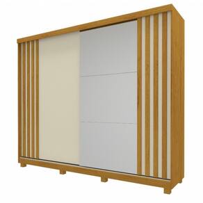 Características: Estrutura em MDF 2 portas de corrediça -sendo 1 delas com espelho- Detalhes ripados nas portas 4 gavetas internas Corrediças telescópicas Prateleiras internas 3 cabideiros em alumínio Pés inclusos Repartições para sapatos Nichos internos