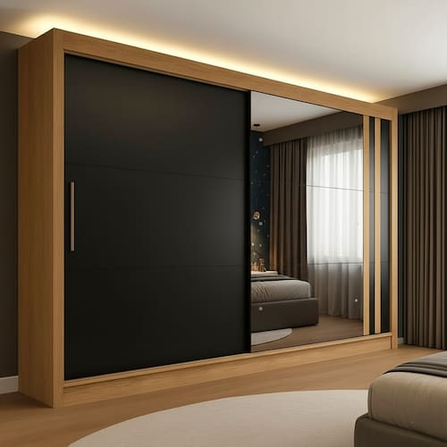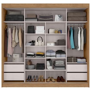 Estilo: Moderno Modular: Não Peso (kg): 222.05 Garantia: 03 Meses Altura (cm): 232.5 Descrição: O Roupeiro San Marino da empresa MX Móveis possui requinte e beleza em suas cores e texturas! Possui materiais de alto padrão alinhados a funcionalidade de suas 2 portas de correr, quatro gavetas e espelho. Puxadores são Alumínio! Largura (cm): 242.5 Possui Pés: Não Possui Gancho: Não Possui Portas: Sim Tipo de Porta: Correr Possui Gavetas: Sim Suporta Até (kg): 100 Tipo de Gaveta: Interna Possui Espelhos: Sim Profundidade (cm): 51.5 Escala de Brilho: Semi-Brilho Gaveta com Chave: Não Possui Calceiros: Não Possui Sapateira: Sim Altura do Espelho: 90.9 Material da Porta: MDF Origem do Produto: Nacional Possui Cabideiros: Sim Possui Iluminação: Não Ambiente Principal: Quarto Formato do Espelho: Retangular Largura do Espelho: 69.3 Material da Gaveta: MDF Material Principal: MDF Necessita Montagem: Sim Possui Penteadeira: Não Possui Prateleiras: Sim Acabamento da Porta: Pintura Texturizada UV Nicho com Cabideiro: Sim Acabamento da Gaveta: Pintura Texturizada UV Espessura do Espelho: 3 Tipo de Guarda-roupa: Casal Espessura do Fundo (mm): 3 Material da Prateleira: MDF Peso Máximo por Gaveta: 5 Possui Espelho Interno: Não Quantidade de Espelhos: 03 Espelhos com Tamanhos Iguais Espessura das Portas (mm): 12 Acabamento da Prateleira: Pintura Texturizada UV Complexidade da Montagem: Média: pode ser montado por mais de uma pessoa e/ou necessite de maior conhecimento para montagem Tipo de Puxador da Porta: Externo Escala de Brilho da Porta: Semi-Brilho Espessura da Estrutura (mm): 15 Tipo de Puxador da Gaveta: Não Possui Escala de Brilho da Gaveta: Semi-Brilho Peso Máximo por Prateleira: 10 Tipo de Corrediça da Gaveta: Metálica Telescópica Espessura das Prateleiras (mm): 12 Material do Puxador da Porta: MDF Possui Organizador de Gaveta: Não Escala de Brilho da Prateleira: Semi-Brilho Espessura do Fundo das Gavetas (mm): 3 Possui Espaço para Vestidos Longos: Sim Tipo de Dobradiça/Corrediça da Porta: Telescópica Recomendações de Uso, Manutenção e Limpeza: Não limpar com álcool ou qualquer outro produto químico, utilize somente pano seco ou levemente umedecido. Para manter seu móvel novo por muito mais tempo, evite locais úmidos, mantenha-o distante de líquidos e de fontes de calor. Evite a exposição prolongada ao sol. Marca: MX Móveis Cor Flex: Não Cor Interna: Ártico Montagem Flex: Não Cor do Produto: Freijó/Nero Itens Inclusos: 1 Guarda-Roupa, Kit Ferragens e Manual de Montagem Linha ou Coleção: Seul Sistema de Montagem: Parafusos, Cavilhas e Minifix