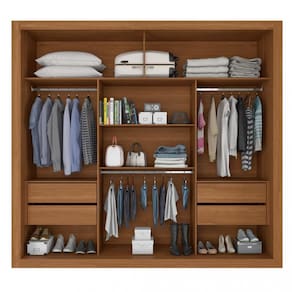 Características: Estrutura em MDP 2 Portas de correr 4 Gavetas Corrediças telescópicas Cabideiros metálicos Trilho inferior de alumínio e trilho superior de plástico Sistema com rolamentos e freios Produto suporta, no total, 44kg