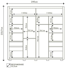 ProductHeight: | Largura: 245 cm | Manual: Sim | SupplierSimpleName: Guarda Roupa Casal 2 Portas de Correr com Espelho Moviment BuritiFendi - Caemmun | Peso: 186 kg | ProductWarranty: 90 dias após o do produto | SizeDescription: 233,7 x 245 x 55,5 cm | Fabricante: Mpozenato | Quantidade de Itens: 1 | Origem: | ColorSupplier: BuritiFendi | ColorSimple: BuritiFendi | OriginState: PR | OriginCountry: | Color: BuritiFendi | Requere montagem: Sim | ColorFamily: BuritiFendi | AssemblyRequired: Sim, sugerimos a contratação do nosso de montagem (para os CEPs em que o está dispon | ProductWeight: 186 | Componentes: 1 Guarda Roupa | Marca: Mpozenato | Gênero: Unisex | ProductWidth: 245 | ProductContents: 1 Guarda Roupa | Tipo de Garantia: Fabricante | Peso Suportado: 72 kg | Material: MDFmm | MaterialFamily: MDFmm | ProductLength: | É Fragil?: Não | da peça: 1 | Altura: 233,7 cm | Cor: BuritiFendi | Profundidade: 55,5 cm
