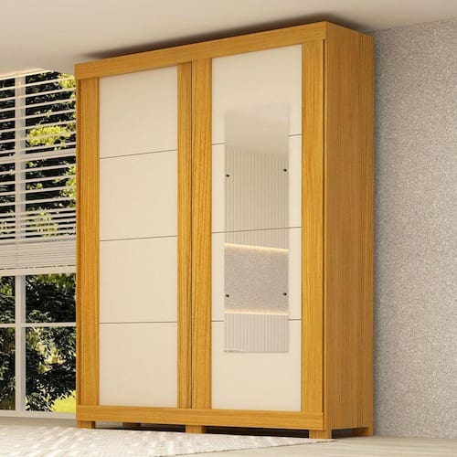 Que tal redecorar seu quarto com muito estilo e qualidade? O Guarda Roupas Boldina é perfeito para essa proposta. Desenvolvido em 100% MDF e acabamento em Pintura UV, oferece ao ambiente todo charme das tendências atuais de decoração e a garantia de maior resistência. Também conta com divisões bem distribuidas em seu interno, com 4 prateleiras e 2 gavetas de corrediças telescópicas. Seu cabideiro e os trilho inferior são em alumínio. Aproveite e adquira já o seu! Acabamento da Prateleira: Pintura UV Escala de Brilho da Prateleira: Semi-Brilho Possui Cabideiros: Sim Acabamento da Gaveta: Pintura UV Escala de Brilho da Gaveta: Semi-Brilho Possui Organizador de Gaveta: Não Acabamento da Porta: Pintura UV Escala de Brilho da Porta: Semi-Brilho Material do Puxador da Porta: MDF Altura do Espelho: 60 cm Altura dos Pés: 5 cm Ambiente Principal: Quarto codigo_ean: 7909903443286 Complexidade da Montagem: Alta: deve ser montado por um montador especializado Cor: Marrom/Off White Cor do Produto: Marrom/Off White Cor Flex: Pode ser montado todo Marrom ou Marrom com Off White. Cor Interna: Linho Escala de Brilho: Semi-Brilho Espessura do Espelho: 3 mm Formato do Espelho: Retangular Gaveta com Chave: Não Guarda-Roupa Suporta Até (kg): 75 kg Informações Complementares: Molduras das Portas/Puxadores em 18mm. Trilho superior em MDF com sistema de molas e inferior em alumínio. Cabideiro em alumínio. Itens Inclusos: 1 Guarda Roupa com Espelho, Kit Ferragens e Manual de Montagem Largura do Espelho: 35 cm Linha ou Coleção: Boldina Manual de Montagem e Instalação: https://product-hub-prd.madeiramadeira.com.br/866499/documents/3d1e361c-bdea-42e2-8977-58c4862415eb8roupeirohelenaprime2ptesp.pdf Material da Gaveta: MDF Material da Porta: MDF Material da Prateleira: MDF Material dos Pés: ABS Material Principal: MDF modular: Não Necessita Montagem: Sim Origem do Produto: Nacional Peso: 96,5 kg Peso Máximo por Gaveta: 10 kg Peso Máximo por Prateleira: 7 kg Possui Calceiros: Não Possui Espaço para Vestidos Longos: Não Possui Espelho: Sim Possui Espelho Interno: Não Possui Ganchos: Não Possui iluminação: Não Possui Nichos: Não Possui Painel de TV: Não Possui Pés: 06 Possui Portas: Sim Possui Prateleiras: Sim Possui Sapateira: Não Produto Montado: Sim Quantidade de Espelho: 02 Espelhos com Tamanhos Iguais Quantidade de Gavetas: 02 Gavetas Quantidade de Prateleiras: 04 Prateleiras Recomendações de Uso, Manutenção e Limpeza: Para limpar não use nenhum tipo de produto, tais como sabão, esponja de aço, álcool e lustra-móveis. Use somente uma flanela seca. Não molhe nem exponha o móvel à umidade ou a luz solar diretamente ou outra forma de calor. Não encoste o móvel na parede. Não o arreste. Se precisar mudar o móvel de lugar, esvazie por completo o móvel, não o arraste, com ajuda de outras pessoas suspenda o móvel de forma segura e o posicione no lugar desejado. Sapatas Niveladoras: Não Sistema de Montagem: Parafusos, Minifix e Cavilhas. Suporta Até (kg): 75 kg Tipo de Corrediça da Gaveta: Metálica Telescópica Tipo de Dobradiça/Corrediça da Porta: Alumínio Tipo de Fixação do Espelho: Parafusos Tipo de Gaveta: Interna Tipo de Guarda-Roupa: Casal Tipo de Puxador da Gaveta: Não Possui Tipo de Puxador da Porta: Embutido Ean: 7909903443286