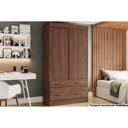 Tipo de Cabideiro - Aéreo Material dos Cabideiros - Cabideira Metálico Quantidade de Portas - 2 Portas de Correr Tipo de Corrediça - c/ Corrediças Metálicas Quantidade de Gavetas - 4 Gavetas