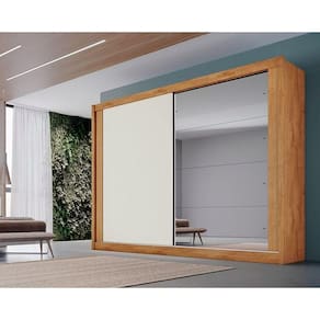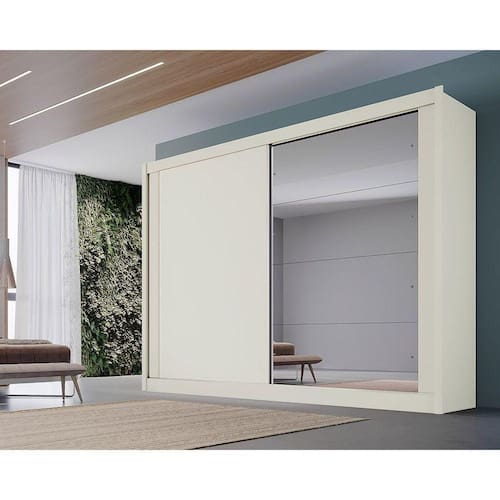Guarda Roupa Casal 2 Portas de Correr e 4 Gavetas c/ Espelho Creta Off White/Amêndoa - Europa Marca: Europa