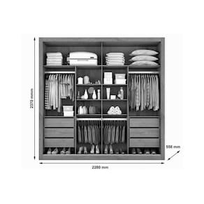 Dimensões(Cm): Comprimento(Profundidade): 55,8cm x Largura: 228cm x Altura: 237cm