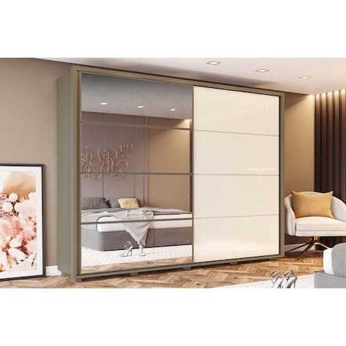 Guarda Roupa Casal 2 Portas de Correr e 6 Gavetas c/ Espelho Cavic Duna/Off White - Henn