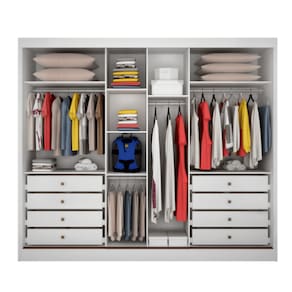 Mais Informações do Produto: Acabamento: Pintura UV; Material Principal: 100% MDF; Possui: 02 Portas de correr; Portas Encabeçadas em MDF 25 mm; Puxador em Alumínio Bronze; Roldanas com Rolamento e Amortecedor; Roldana Superior com Rolamento e Freio; Possui: 08 Gavetas; Gavetas com Corrediças Telescópicas; Puxadores nas Gavetas; Possui: 04 Cabideiros em Alumínio; Espaço para Longos; Possui: 08 Prateleiras Internas; Espaço para Sapateira; Excelente Espaço Interno; Trilho inferior em Alumínio; Complexidade da Montagem: Alta; Itens Inclusos: 01 Roupeiro Geom Plus Novo Horizonte e Manual de Montagem.