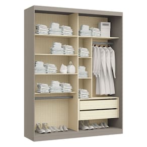 Guarda-Roupa 2 Portas de Correr Móveis Castro é produzido em MDP. É um armário eficiente, possui múltiplas repartições para acomodar roupas e objetos, cabideiros e puxadores em alumínio na cor champanhe. Acabamento da Prateleira: Pintura Escala de Brilho da Prateleira: Semi-Fosco Acabamento da Gaveta: Pintura Escala de Brilho da Gaveta: Semi-Fosco Possui Organizador de Gaveta: Não Acabamento da Porta: Pintura Escala de Brilho da Porta: Semi-Fosco Ambiente Principal: Quarto codigo_ean: 7900288177735 Complexidade da Montagem: Alta: deve ser montado por um montador especializado Cor: Níquel Cor do Produto: Níquel Cor Interna: Boucle Escala de Brilho: Semi-Fosco Espessura da Estrutura (mm): 15 mm Espessura das Portas (mm): 15 mm Espessura das Prateleiras (mm): 15 mm Espessura do Fundo (mm): 3 mm Espessura do Fundo das Gavetas (mm): 3 mm Gaveta com Chave: Não Itens Inclusos: 1 Guarda-Roupa, Kit Ferragens e Manual de Montagem. Linha ou Coleção: Elegance Manual de Montagem e Instalação: https://product-hub-prd.madeiramadeira.com.br/322774920/documents/87fc99a8-bb6a-441a-8186-d49a9eb2d485fc697ea1bd932218113604222a.pdf Marca: Móveis Castro Material da Gaveta: MDP Material da Porta: MDP Material da Prateleira: MDP Material Principal: MDP modular: Sim Montagem Flex: Não Necessita Montagem: Sim O Módulo Pode ser utilizado individualmente: Sim Origem do Produto: Nacional Peso: 136,94 kg Peso Máximo por Gaveta: 5 kg Peso Máximo por Prateleira: 5 kg Porta Janelada: Não Possui Calceiros: 01 Possui Espelho: Não Possui Pés: Não Possui Portas: Sim Possui Prateleiras: Sim Produto Montado: Sim Quantidade de Cabideiros: 01 Cabideiro Quantidade de Gavetas: 02 Gavetas Quantidade de Prateleiras: 07 Prateleiras Recomendações de Uso, Manutenção e Limpeza: Limpar com pano levemente umedecido. Sistema de Montagem: Parafusos Tipo de Corrediça da Gaveta: Metálica Telescópica Tipo de Dobradiça/Corrediça da Porta: Metálica Tipo de Gaveta: Interna Tipo de Guarda-Roupa: Casal Tipo de Puxador da Gaveta: Não Possui Tipo de Puxador da Porta: Externo