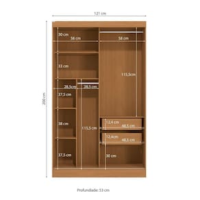 Aposte no Roupeiro R588 da Kappesberg. Com duas portas de correr, ideal para um quarto de solteiro, são 2m de altura, 1,20m de largura e 53cm de profundidade, todo produzido em chapa MDP de 15mm, o que garante mais robustez e qualidade. Com até sete camadas de pintura na cor canela e acabamento touch, com a textura dos veios da madeira, ele combina com todos os espaços, remetendo aos tons da natureza. E na parte interna, ele possui uma ótima divisão de espaço, com nichos de tamanhos diferentes, cabideiros metálicos e duas gavetas com corrediças metálicas para organizar seus itens com praticidade. Acabamento da Prateleira: Pintura UV Escala de Brilho da Prateleira: Fosco Possui Cabideiros: Sim Acabamento da Gaveta: Pintura UV Escala de Brilho da Gaveta: Fosco Possui Organizador de Gaveta: Não Acabamento da Porta: Pintura UV Escala de Brilho da Porta: Fosco Material do Puxador da Porta: Plástico Ambiente Principal: Quarto codigo_ean: 7900288156242 Complexidade da Montagem: Média: pode ser montado por mais de uma pessoa e/ou necessite de maior conhecimento para montagem Cor: Canela Cor da Porta: Marrom Cor do Produto: Canela Cor do Puxador: Marrom Escala de Brilho: Fosco Espessura da Estrutura (mm): 12 mm Espessura das Portas (mm): 15 mm Espessura das Prateleiras (mm): 12 mm Espessura do Fundo (mm): 3 mm Espessura do Fundo das Gavetas (mm): 3 mm Gaveta com Chave: Não Itens Inclusos: 1 Guarda-Roupa, Ferragens e Manual de Montagem Linha ou Coleção: Móveis Kappesberg Manual de Montagem e Instalação: https://product-hub-prd.madeiramadeira.com.br/983976/documents/d045b365-2a96-468d-a0f4-42c2014831fe2943179544517478518086545.pdf Marca: Kappesberg Material da Gaveta: MDP Material da Porta: MDP Material da Prateleira: MDP Material Principal: MDP modular: Não Necessita Montagem: Sim Origem do Produto: Nacional Peso: 76,1773 kg Peso Máximo por Gaveta: 6 kg Peso Máximo por Prateleira: 7 kg Porta Janelada: Não Possui Calceiros: Não Possui Espelho: Não Possui Pés: Não Possui Portas: Sim Possui Prateleiras: Sim Produto Montado: Sim Quantidade de Cabideiros: 02 Cabideiros Quantidade de Gavetas: 02 Gavetas Quantidade de Prateleiras: 05 Prateleiras Recomendações de Uso, Manutenção e Limpeza: Use um pano limpo e ligeiramente umidecido em água ou álcool (recomendamos álcool etílico hidratado). Logo após, seque a superfície com um pano seco e macio. Em grandes superfícies limpe pequenas áreas de cada vez, trabalhando de baixo para cima. Sistema de Montagem: Parafusos, Cavilhas e Minifix Tipo de Corrediça da Gaveta: Metálica Telescópica Tipo de Dobradiça/Corrediça da Porta: Metálica Tipo de Gaveta: Interna Tipo de Guarda-Roupa: Casal Tipo de Puxador da Gaveta: Não Possui Tipo de Puxador da Porta: Externo