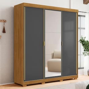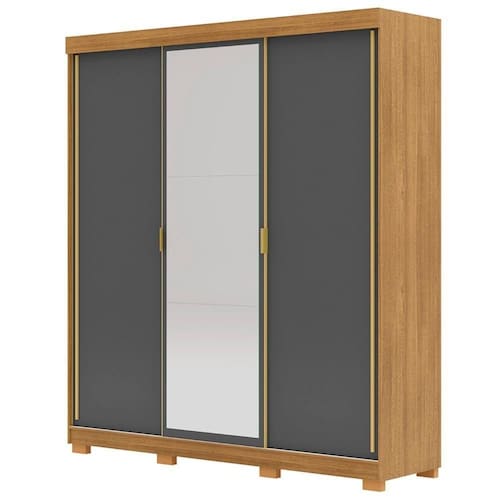 O Guarda Roupa Casal, possui Portas Com Espelhos que não só ampliam a sensação de espaço, mas também traz maior praticidade ao seu quarto. Este modelo destaca-se pelos pés opcionais na montagem, permitindo maior personalização do ambiente. Os puxadores em tom dourado e design clean complementam o visual elegante, conferindo personalidade ao produto.