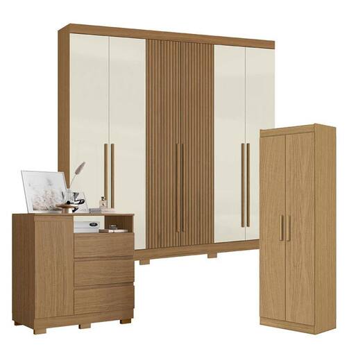 Guarda Roupa Casal 2030230 Atacama Areia com Multiuso 2000191 e Cômoda 2014143 Atacama - Aramóveis