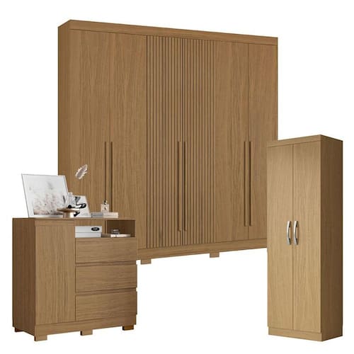 Guarda Roupa Casal 2030230 com Multiuso New 2000192 e Cômoda 2014143 Atacama - Aramóveis