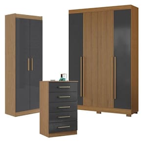 Guarda Roupa Casal 2030240 com Armário Multiuso 2000191 e Cômoda 2014140 Atacama Grafite - Aramóveis