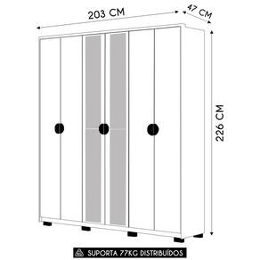 O Guarda-Roupa é a solução perfeita para quem busca praticidade e sofisticação em um único móvel. Com seis portas, sendo duas delas com espelho e dobradiças metálicas, sua estrutura 100% em MDF garante alta resistência e durabilidade, atendendo às necessidades do uso diário com qualidade superior.