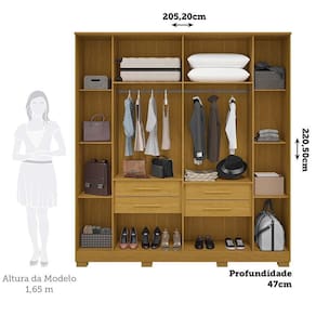 Apresentamos o Guarda-roupa Petunia, a solução perfeita para quem busca um móvel espaçoso, moderno e com design sofisticado. Com portas ripadas que conferem um charme único, este roupeiro é ideal para organizar suas roupas e objetos pessoais com praticidade e estilo. Acabamento da Prateleira: Pintura UV Escala de Brilho da Prateleira: Semi-Brilho Possui Cabideiros: Sim Acabamento da Gaveta: Pintura UV Escala de Brilho da Gaveta: Semi-Brilho Material do Puxador da Gaveta: MDF Possui Organizador de Gaveta: Não Acabamento da Porta: Pintura UV Escala de Brilho da Porta: Semi-Brilho Material do Puxador da Porta: MDF Altura dos Pés: 5 cm Ambiente Principal: Quarto codigo_ean: 7900288069665 Complexidade da Montagem: Alta: deve ser montado por um montador especializado Cor: Cinamomo/Off White Cor da Porta: Off White Cor do Produto: Cinamomo/Off White Cor do Puxador: Cinamomo Cor Interna: Cinamomo Escala de Brilho: Semi-Brilho Espessura da Estrutura (mm): 12 mm Espessura das Portas (mm): 15 mm Espessura das Prateleiras (mm): 12 mm Espessura do Fundo (mm): 2,5 mm Espessura do Fundo das Gavetas (mm): 2,5 mm Gaveta com Chave: Não Guarda-Roupa Suporta Até (kg): 90 kg Itens Inclusos: 1 Guarda-Roupa + Kit Ferragens + Manual de Montagem Linha ou Coleção: Petunia Manual de Montagem e Instalação: https://cdn2.madeiramadeira.com.br/prd/acp-moveis/2692929-1739803874-978400-149384.pdf Marca: Espresso Móveis Material da Gaveta: MDF Material da Porta: MDF Material da Prateleira: MDF Material dos Pés: Plástico Material Principal: MDF modular: Não Necessita Montagem: Sim Nicho com Cabideiro: Não Origem do Produto: Nacional Peso: 141 kg Peso Máximo por Gaveta: 5 kg Peso Máximo por Prateleira: 5 kg Porta Janelada: Não Possui Calceiros: Não Possui Capelinha: Não Possui Espaço para Vestidos Longos: Não Possui Espelho: Não Possui Espelho Interno: Não Possui Ganchos: Não Possui iluminação: Não Possui Painel de TV: Não Possui Penteadeira: Não Possui Pés: 08 Possui Portas: Sim Possui Prateleiras: Sim Quantidade de Cabideiros: 02 Cabideiros Quantidade de Gavetas: 04 Gavetas Quantidade de Prateleiras: 08 Prateleiras Recomendações de Uso, Manutenção e Limpeza: Para limpar não use nenhum tipo de produto, tais como sabão, esponja de aço, álcool e lustra-móveis. Use somente uma flanela seca. Não molhe nem exponha o móvel à umidade ou a luz solar diretamente ou outra forma de calor. Não encoste o móvel na parede. Não o arreste. Se precisar mudar o móvel de lugar, esvazie por completo o móvel, não o arraste, com ajuda de outras pessoas suspenda o móvel de forma segura e o posicione no lugar desejado. Sapatas Niveladoras: Não Sistema de Montagem: Parafusos, Cantoneiras e Minifix Suporta Até (kg): 90 kg Tipo de Corrediça da Gaveta: Metálica Telescópica Tipo de Dobradiça/Corrediça da Porta: Metálica Tipo de Gaveta: Interna Tipo de Guarda-Roupa: Casal Tipo de Puxador da Gaveta: Externo Tipo de Puxador da Porta: Externo