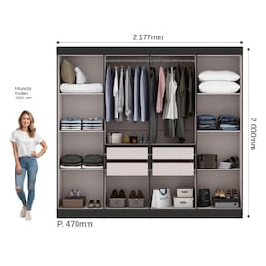 Guarda-roupa Casal 217,7cm X 200cm Slim Preto
