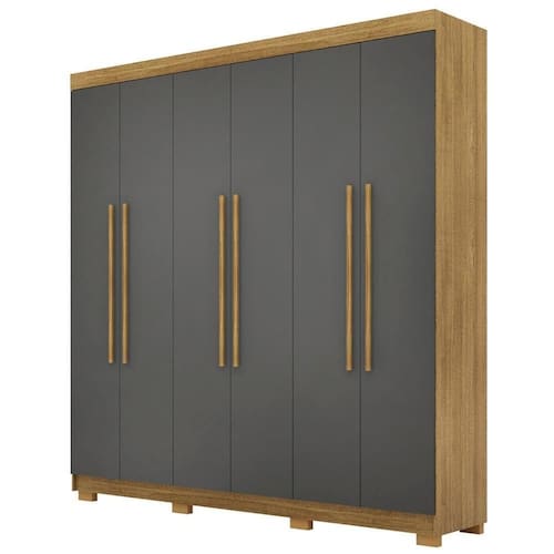 O Guarda Roupa Bolty é ideal para casais que procuram espaço e funcionalidade em um único móvel. Com seis portas e duas gavetas, oferece ótimo aproveitamento interno, permitindo organizar roupas, acessórios e muito mais. Seu interior bem planejado conta com cabideiros de alumínio, várias prateleiras e um maleiro espaçoso, garantindo praticidade e organização no dia a dia.