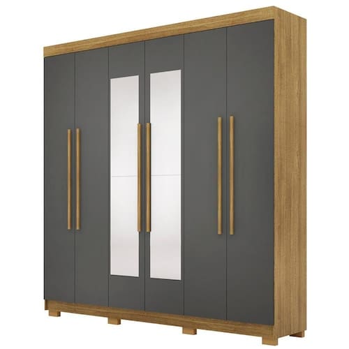 O Guarda Roupa Elegance é ideal para casais que procuram espaço e funcionalidade em um único móvel. Com seis portas e duas gavetas, sendo duas Portas Com Espelhos oferece ótimo aproveitamento interno, permitindo organizar roupas, acessórios e muito mais. Seu interior bem planejado conta com cabideiros de alumínio, várias prateleiras e um maleiro espaçoso, garantindo praticidade e organização no dia a dia.