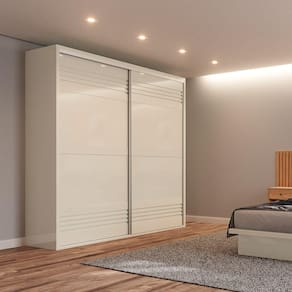 quarto de casal, pois as portas com abertura deslizante não atrapalham a circulação do ambiente. Além disso, possui um excelente compartimento interno com várias prateleiras, 2 gavetas e cabideiros, itens perfeitos para manter tudo no lugar e facilitar a visualização das peças.