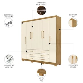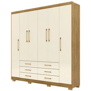 Guarda Roupa Casal 223cm 6 Portas Rick Nature/Champanhe V02 - Mpozenato