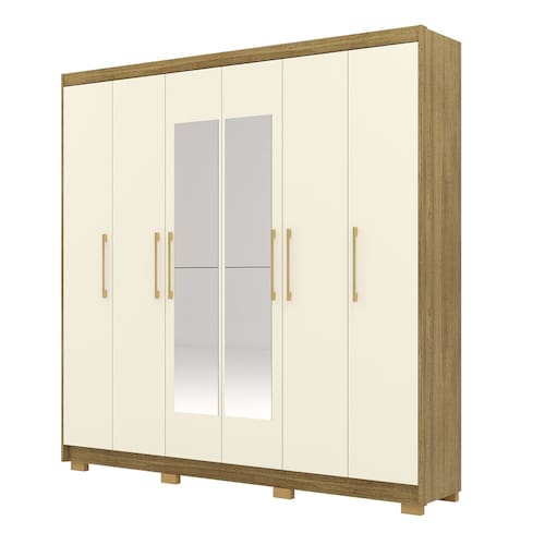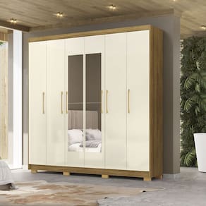 Guarda Roupa Casal 223cm Com Espelho Pako Nature/Champanhe V02 - Mpozenato