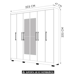 Externamente, o modelo impressiona pelo design moderno. O Guarda Roupa Com Espelho oferece tanto funcionalidade quanto estilo. Os puxadores em ABS com acabamento metalizado e as vistas laterais mais largas conferem um toque de imponência ao móvel do Quarto. Os pés elevados não só facilitam a limpeza, mas também garantem um visual mais leve e prático para o ambiente, tornando o espaço mais organizado e funcional.