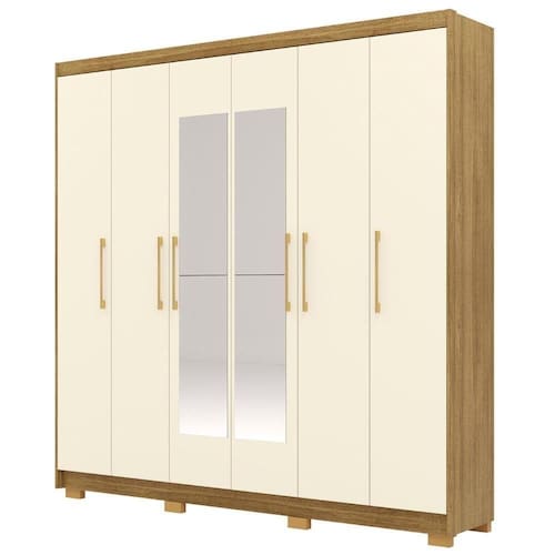 Guarda Roupa Casal 223cm Com Espelho Pernambuco Nature/Champanhe - Vila Rica