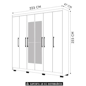 Externamente, o modelo impressiona pelo design moderno. O Guarda Roupa Com Espelho oferece tanto funcionalidade quanto estilo. Os puxadores em ABS com acabamento metalizado e as vistas laterais mais largas conferem um toque de imponência ao móvel do Quarto. Os pés elevados não só facilitam a limpeza, mas também garantem um visual mais leve e prático para o ambiente, tornando o espaço mais organizado e funcional.